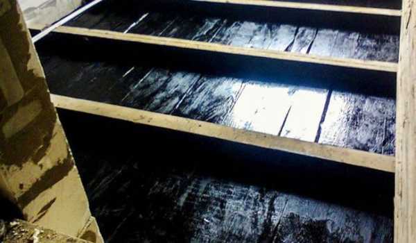 Данный способ защиты покрытия от сырости выполняется путем наклеивания листов гидроизоляционного материала. Покрытие рубероидом, битумом, полимерами выполняется при сильном нагревании – от 45° C до 55° C. Предварительно на поверхность наносится мастика.