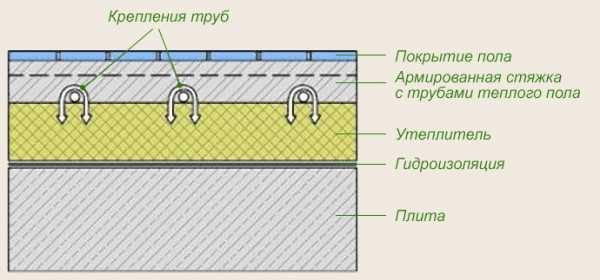 Для большей наглядности — строение общего «пирога» с термо- и гидроизоляцией пола