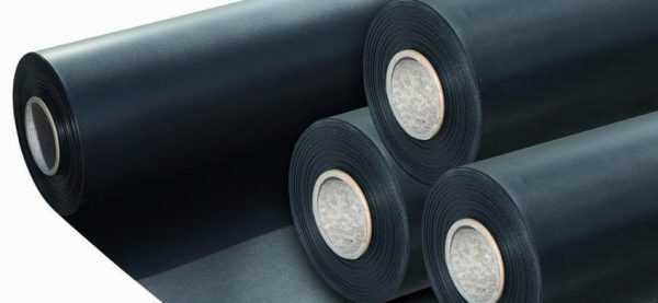 Рулонная гидроизоляция — мембрана (геомембрана). На стыке имеет замок. Дополнительно производится склеивание.Рулонные гидроизолирующие материалы бывает двух типов: наплавные и самоклеящиеся. Наплавные материалы долговечные, недорогие в цене. Их недостаток: укладывать гидроизоляцию надо с помощью бензиновой или газовой горелки, при нагреве выделяют неприятный запах, вредный дым. Способ вполне пригоден для использования на даче своими руками при гидроизоляции подпола. Укладка рубероида во время работы по гидроизоляции требует установки дополнительной стяжки.