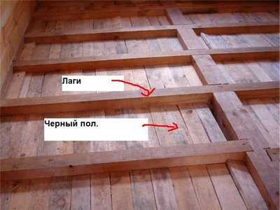 - Далее, на лаги укладывают деревянный пол, доски для которого обязательно заранее обрабатывают комплексными составами.