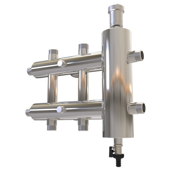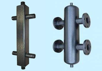 Чаще всего для отопления применяется гидравлический разделитель, чье устройство предусматривает установку коллектора. Они даже продаются одним комплектом, а изготавливаются из таких материалов: