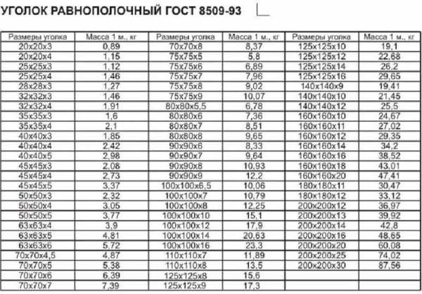 Гост равнополочных уголков – ГОСТ 8509-93 Уголки стальные горячекатаные равнополочные. Сортамент