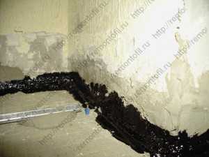 - Щели заделывают цементным раствором. Особое внимание уделяется местам стыковки стен и пола.