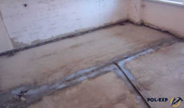 По контуру пола приклеивается изоляционная лента из минеральной ваты или полистирола толщиной в 1 см и шириной 0,1 м.