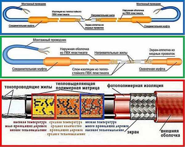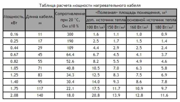 - электрический нагревательный кабель – 0,01-0,06квт/м. В один квадратный метр, в среднем помещается пять витков.