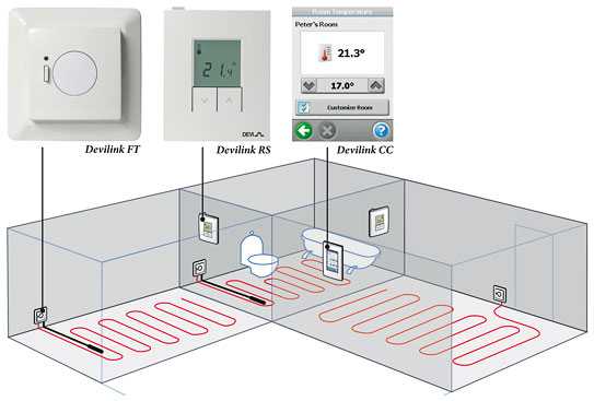 Правда, если теплый пол это основной источник тепла во всех комнатах, то придется их ставить несколько штук по разным зонам. Например в ванной комнате греющий кабель или маты работают гораздо дольше чем на кухне или в зале.