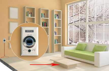 Его необходимо монтировать в самом прохладном месте комнаты. Отопление будет самостоятельно отключаться при достижении определенной температуры, которую вы заранее задаете и также включаться без вашего участия, экономя электроэнергию.