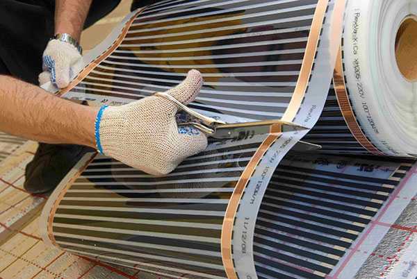 Что касается греющих элементов, то они надежно запаиваются в два слоя. Посредством медно-серебряных или просто медных проводников к ним подается электричество. Чтобы подключить ИК-пленку на основе углеродных элементов используется параллельная схема.