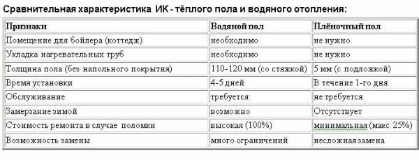 При сравнении инфракрасного и водяного теплого пола в первую очередь стоит отметить тот факт, что первый вариант больше подходит для использования в качестве вспомогательной системы отопления. В то же время водяные могут успешно использоваться как самостоятельное оборудование, полностью обеспечивающее теплом дом.