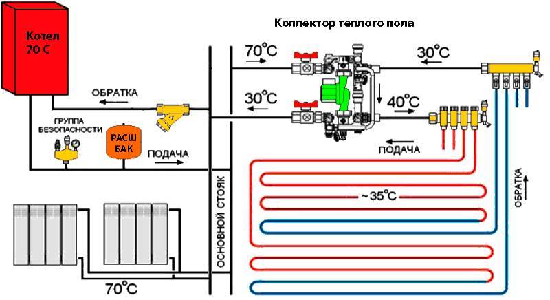 Коллектор должен содержать количество выходов, достаточное для подключения всех контуров.
