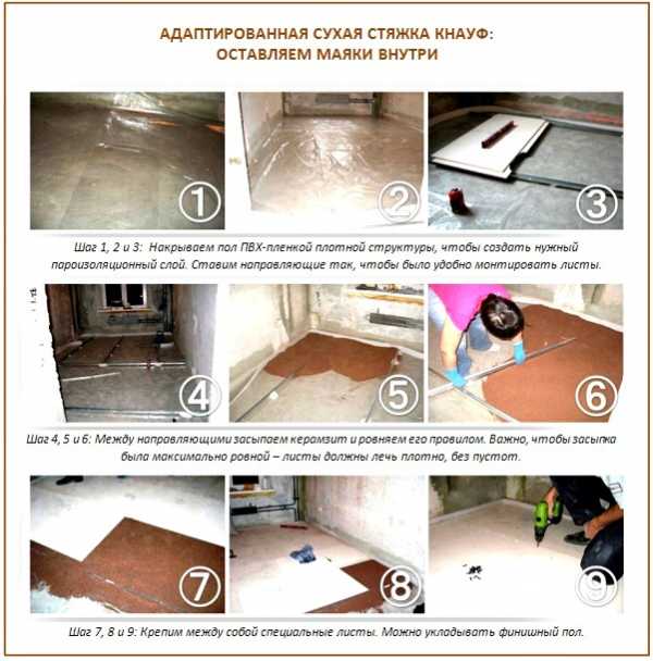 как сделать сухую стяжку, устройство сухой стяжки пола, простой и быстрый способ выравнивания пола, порядок проведения работ