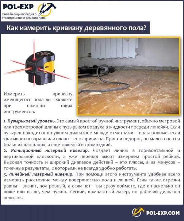 ΠΡΠ»ΠΈ ΡΠ°ΠΊΠ°Ρ Π²Π΅ΡΠΎΡΡΠ½ΠΎΡΡΡ ΡΡΡΠ΅ΡΡΠ²ΡΠ΅Ρ, ΠΏΠΎΠ½Π°Π΄ΠΎΠ±ΠΈΡΡΡΡ Π΄ΠΎΠΏΠΎΠ»Π½ΠΈΡΠ΅Π»ΡΠ½Π°Ρ Π³ΠΈΠ΄ΡΠΎΠΈΠ·ΠΎΠ»ΡΡΠΈΡ Π² Π²ΠΈΠ΄Π΅ ΠΏΠΎΠ»ΠΈΡΡΠΈΠ»Π΅Π½ΠΎΠ²ΠΎΠΉ ΠΏΠ»Π΅Π½ΠΊΠΈ ΠΈΠ»ΠΈ ΠΏΠΎΠ΄Π»ΠΎΠΆΠΊΠΈ Ρ ΠΈΠ·ΠΎΠ»ΠΈΡΡΡΡΠΈΠΌ ΡΠ»ΠΎΠ΅ΠΌ. ΠΡΠΎΠΌΠ΅ ΡΠΎΠ³ΠΎ, ΠΏΠ΅ΡΠ΅Π΄ ΡΠ΅ΠΌ, ΠΊΠ°ΠΊ ΠΏΡΠΎΠ²ΠΎΠ΄ΠΈΡΡ ΠΎΠΏΠ΅ΡΠ°ΡΠΈΡ ΡΠΊΠ»Π°Π΄ΠΊΠ° Π»Π°ΠΌΠΈΠ½Π°ΡΠ° Π½Π° Π΄Π΅ΡΠ΅Π²ΡΠ½Π½ΡΠΉ ΠΏΠΎΠ» ΡΠ²ΠΎΠΈΠΌΠΈ ΡΡΠΊΠ°ΠΌΠΈ, Π½Π΅ΠΎΠ±Ρ ΠΎΠ΄ΠΈΠΌΠΎ ΠΏΡΠΎΠ²Π΅ΡΠΈΡΡ Π΅Π³ΠΎ ΠΊΡΠΈΠ²ΠΈΠ·Π½Ρ. Π Π·Π°Π²ΠΈΡΠΈΠΌΠΎΡΡΠΈ ΠΎΡ ΡΡΠ΅ΠΏΠ΅Π½ΠΈ ΠΊΡΠΈΠ²ΠΈΠ·Π½Ρ Π²ΡΠ±ΠΈΡΠ°Π΅ΡΡΡ ΠΎΠ΄ΠΈΠ½ ΠΈΠ· Π½Π°ΠΈΠ±ΠΎΠ»Π΅Π΅ ΠΏΠΎΠ΄Ρ ΠΎΠ΄ΡΡΠΈΡ ΡΠΏΠΎΡΠΎΠ±ΠΎΠ² Π²ΡΡΠ°Π²Π½ΠΈΠ²Π°Π½ΠΈΡ ΠΏΠΎΠ²Π΅ΡΡ Π½ΠΎΡΡΠΈ.