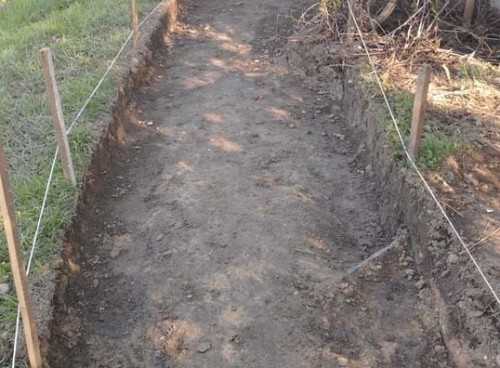 На этом разметка закончена. Теперь нужно снять весь дерн с поверхности. Примерно 15-20 сантиметров необходимо снять. Теперь нужно удалить около 30-35 сантиметров грунта. В образовавшуюся яму засыпается гравий слоем в 10-15 сантиметров, фракция которого не должны превышать 20 миллиметров. Положенный гравий необходимо утрамбовать. На этом подготовительные работы закончены, можно приступать к работе по созданию покрытия, на которое будет производиться плитки укладка на улице