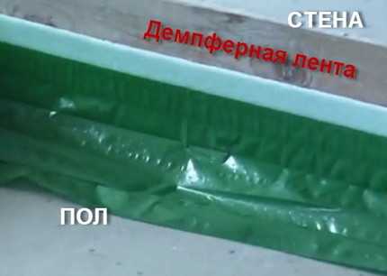 - по периметру стены наклеить демпферную ленту толщиной в 8-10 мм и шириной в 10 см.