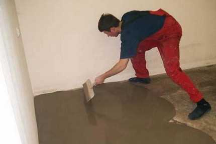 Можно использовать обычный раствор цемента и песка, но лучше применить самовыравнивающиеся смеси: они гораздо быстрее сохнут, да и работать с ними удобнее.