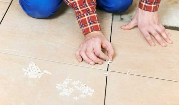 Важный момент! Укладывать плитку нужно начинать с самого дальнего угла, продвигаться в сторону дверей, ориентируясь на осевые линии.