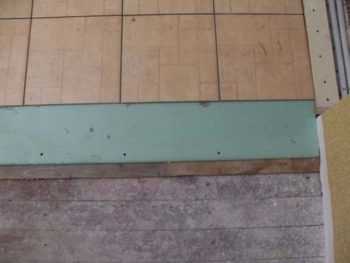 Внимание! Положенный настил на невлагостойкую основу из гипсокартона может деформироваться. Узнать влагостойкий напольный гипсокартон в магазине можно по синему цвету плит.