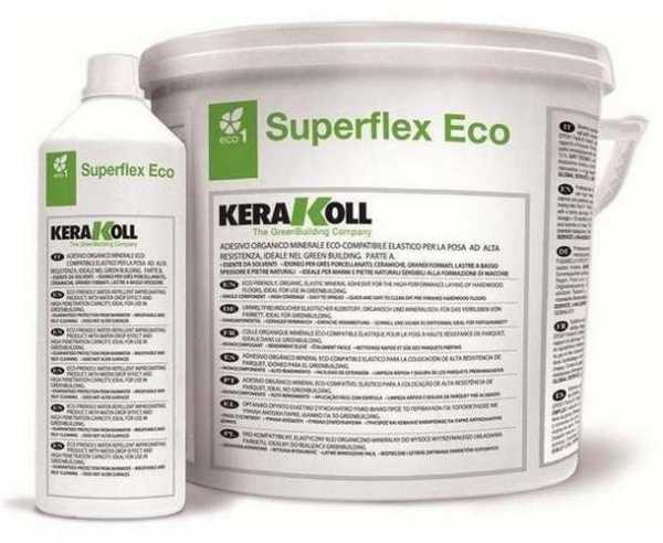 Плитка фиксируется двухкомпонентным клеем из полиуретана. Он сохраняет пластичность после затвердевания, так что обеспечит не только надежное закрепление плитки, но и компенсирует небольшие колебания частей основания пола.