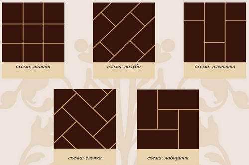 Выбираете наболее приглянувшуюся схему укладки (традиционную, по диагонали, кирпичиком и т. д.) и приступаете к процессу. Если выбрана диагональ, то начинаете с центра. Если другой способ – то с самого видного угла, чтобы подрезка не была заметна. Клеевой состав наносится непосредственно на основание, ряды укладываются строго под контролем уровня. Старайтесь, чтобы слой клея был не очень толстым, так как он создает дополнительную нагрузку на и без того недостаточно прочное основание, коим является деревянный пол. После укладки проводится затирка швов. Делать это можно через сутки после окончания всего процесса.