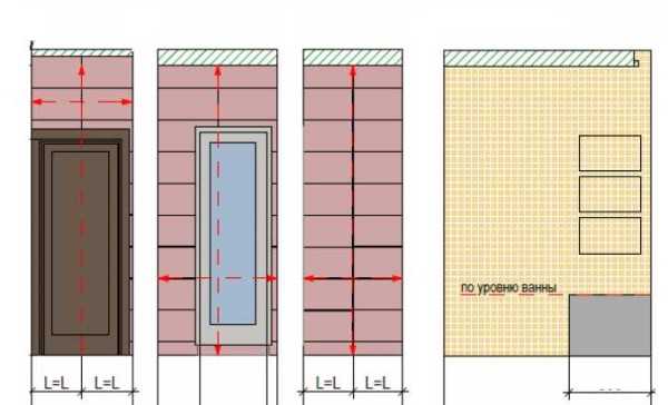 С размещением плитки в высоту ситуация немного иная. В некоторых случаях шов делают по какому-то определенному уровню. В ванной комнате это часто край установленной ванной. Если подобных требований нет, можно поступить также: найти центр, относительно него расположить (нарисовать на стене) положение плиток. Таким образом найдете как нужно будет подрезать плитки верхнего и нижнего ряда.