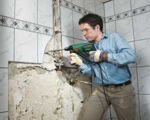 Чтобы положить плитку на стену, нужно удалить старое покрытие, которое может отпасть. Если на стене присутствуют жирные пятна, необходимо их вывести или выбить часть штукатурки. К таким местам плохо пристает клей. Затем следует простучать стены молотком, чтобы определить пустоты. В некоторых местах штукатурка может отслоиться, но не вздуться. Под весом кафеля такой участок может отпасть, поэтому при характерном звуке пустоты под штукатуркой все отбивают молотком или киркой.