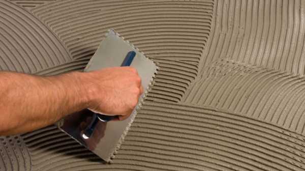 Распределять ее равномерно лучше при помощи зубчатого шпателя, а вот если есть неровности, то в этих местах порционно добавлять на плитку смесь для корректуры поверхности.
