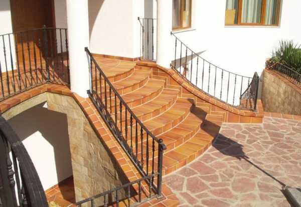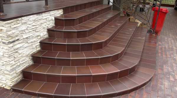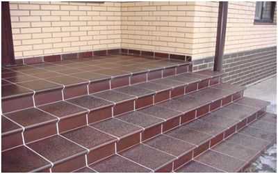 - Отделка крыльца плиткой лестничной серии, то есть комплектом из различных фасонных деталей.