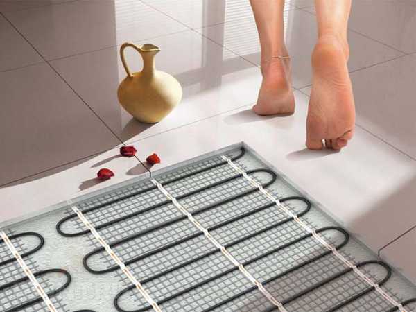 Общий вид теплого пола, облицованного керамической плиткойВиды пола под плитку