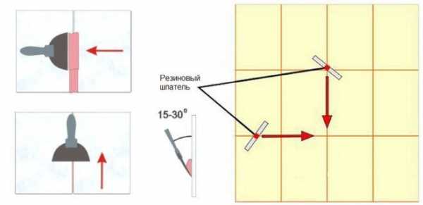 Для затирки используется специальная смесь. Для пола рекомендуется приобретать влагостойкую затирку. Приготовленной смесью равномерно заполняете все швы. Не оставляйте наплывов на лицевой стороне облицовки.