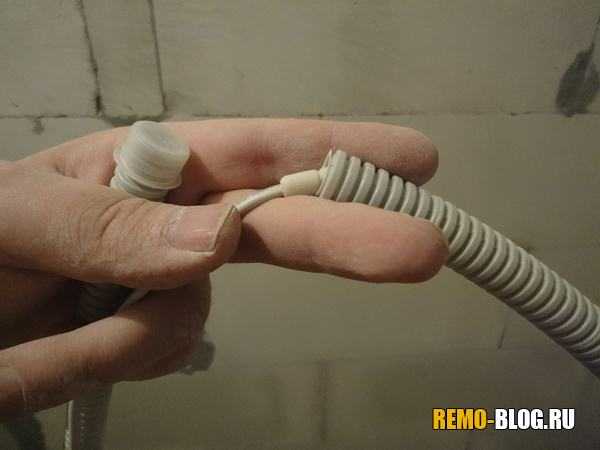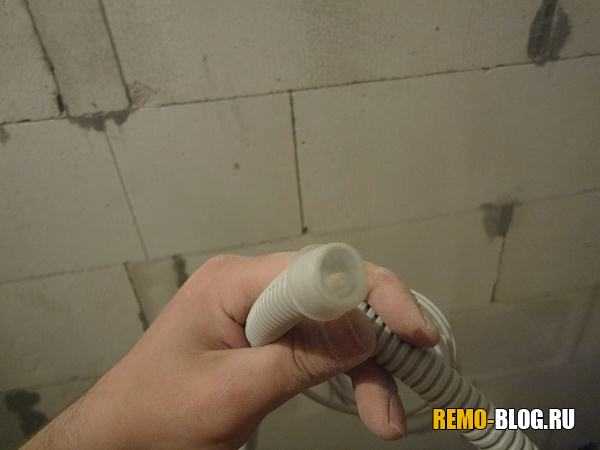 Закладываем термодатчик в гофру, и устанавливаем в канал.