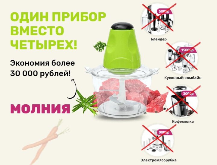 Измельчитель поможет приготовить фарш из курицы, свинины, говядины без использования мясорубки.