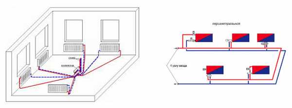 ΠΠ΅ΡΠΈΠΌΠ΅ΡΡΠ°Π»ΡΠ½Π°Ρ ΡΠ°Π·Π²ΠΎΠ΄ΠΊΠ° ΠΏΡΠ΅Π΄ΡΡΠΌΠ°ΡΡΠΈΠ²Π°Π΅Ρ ΠΏΡΠΎΠΊΠ»Π°Π΄ΠΊΡ ΡΡΡΠ± Π²Π΄ΠΎΠ»Ρ ΡΡΠ΅Π½ ΠΏΠΎ ΠΏΠ΅ΡΠΈΠΌΠ΅ΡΡΡ ΠΊΠ²Π°ΡΡΠΈΡΡ, Π²ΠΎΠ·ΠΌΠΎΠΆΠ½Π° ΡΠ°ΠΊΠΆΠ΅ ΡΠΊΡΡΡΠ°Ρ ΠΏΡΠΎΠΊΠ»Π°Π΄ΠΊΠ° Π² ΠΊΠΎΠ½ΡΡΡΡΠΊΡΠΈΠΈ ΠΏΠΎΠ»Π°. Π’Π°ΠΊΡΡ ΡΠΈΡΡΠ΅ΠΌΡ Π²ΠΎΠ΄ΡΠ½ΠΎΠ³ΠΎ ΠΎΡΠΎΠΏΠ»Π΅Π½ΠΈΡ ΡΠ΄ΠΎΠ±Π½ΠΎ ΠΌΠΎΠ½ΡΠΈΡΠΎΠ²Π°ΡΡ ΠΊΠ°ΠΊ ΠΏΡΠΈ Π½ΠΎΠ²ΠΎΠΌ ΡΡΡΠΎΠΈΡΠ΅Π»ΡΡΡΠ²Π΅, ΡΠ°ΠΊ ΠΈ ΠΏΡΠΈ ΡΠ΅ΠΊΠΎΠ½ΡΡΡΡΠΊΡΠΈΠΈ. ΠΡΠ½ΠΎΠ²Π½ΠΎΠΉ Π½Π΅Π΄ΠΎΡΡΠ°ΡΠΎΠΊ β Π·Π½Π°ΡΠΈΡΠ΅Π»ΡΠ½Π°Ρ Π΄Π»ΠΈΠ½Π° ΡΡΡΠ±ΠΎΠΏΡΠΎΠ²ΠΎΠ΄ΠΎΠ² ΠΈ ΡΠ»ΠΎΠΆΠ½ΠΎΡΡΡ ΠΎΠ±Π΅ΡΠΏΠ΅ΡΠΈΡΡ Π²ΠΎΠ·ΠΌΠΎΠΆΠ½ΠΎΡΡΡ ΡΠ»ΠΈΠ²Π° Π²ΠΎΠ΄Ρ Ρ ΡΠΈΡΡΠ΅ΠΌΡ.