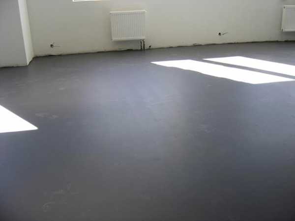 - Выливаете на бетонный пол подготовленный состав небольшими полосками или лужицами, а затем с дальнего угла помещения начинаете распределять его по всей поверхности. Удобнее всего такую работу производить несколькими шпателями.
