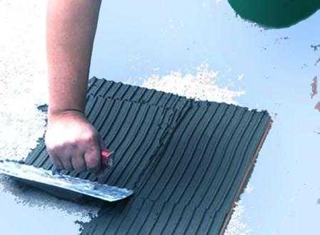 На клей на цементной основе укладывают плитку