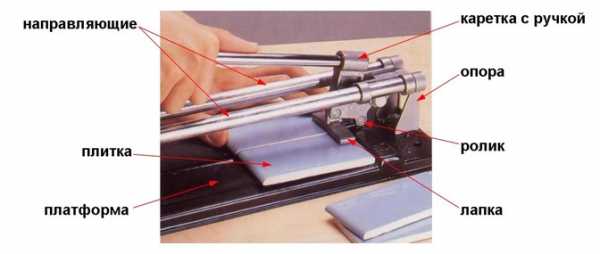 - Затем плитка кладется на стол, и линия обрабатывается плиткорезом.