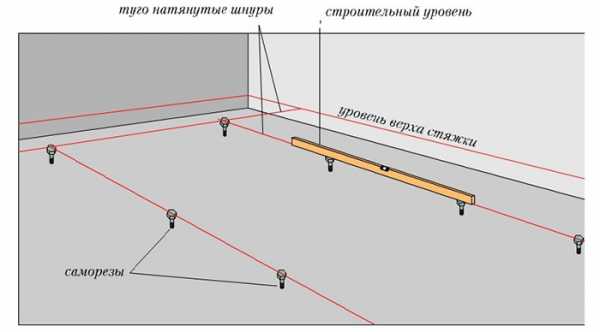 В качестве основной задачи стяжки выступает создание ровной поверхности. Сделать ее можно с помощью специальных растворных маяков. Они выставляются в одной плоскости с помощью реечного уровня.