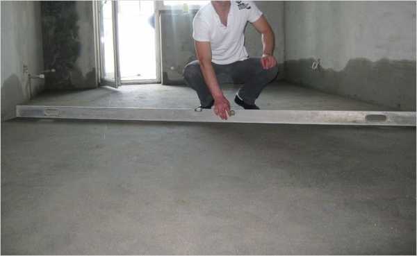 - Если работы проводятся в новостройке, то нужно убрать весь мусор и сделать цементную стяжку, а если вы проводите ремонт в старой квартире, то пол нужно выровнять и зашпаклевать все неровности.