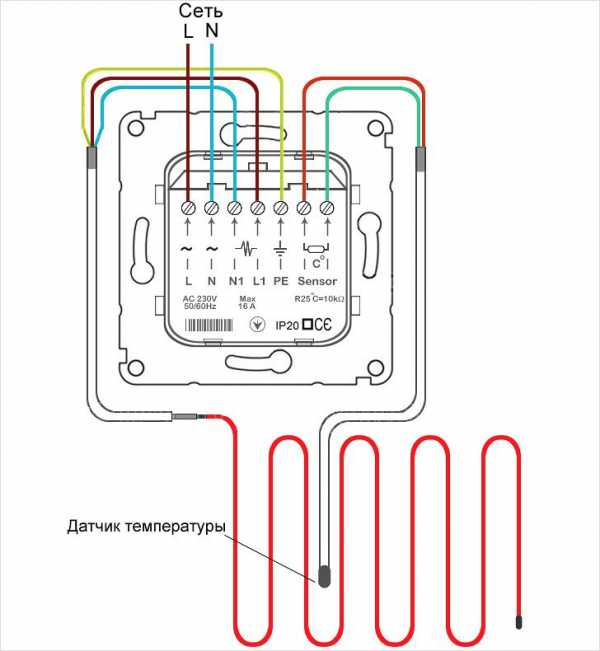 Схема подключения терморегулятораОбратите внимание! Для надёжности работы всей системы подключить её нужно непосредственно от электрощита. Будет лучше, если вы «посадите» запитывающий провод на отдельный выключатель.