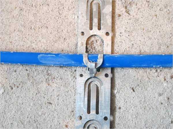 - Для лучшего крепления кабеля его крепят к армирующей сетке малярным скотчем.