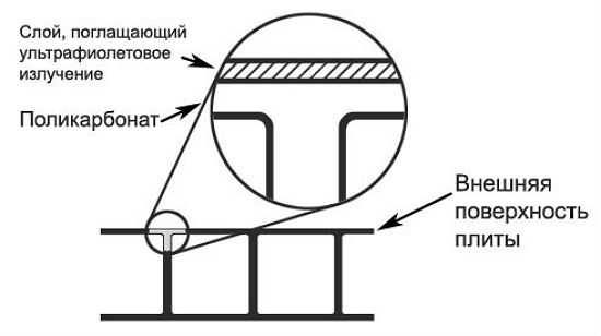 Изнаночная сторона поликарбоната разрушается под действием лучей солнца