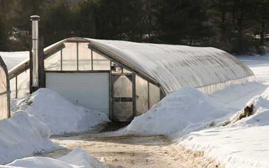 - Для районов со сложным климатом, особенно для Сибири, зимнюю теплицу лучше заглубить на 2 уровня промерзания почвы, сделать односкатную крышу из светопрозрачного материала, чтобы обеспечить попадание солнечного света внутрь постройки.