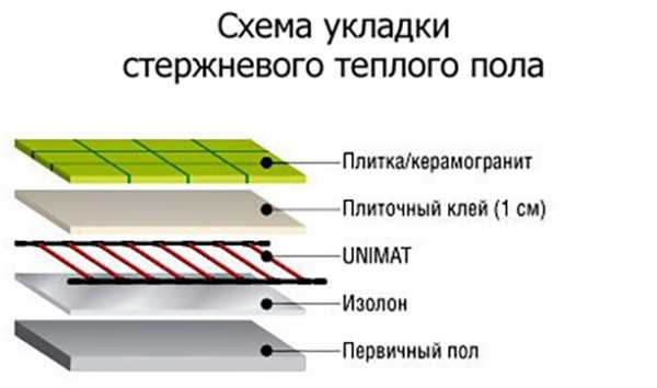 Примечание. Стержневая система – это совокупность отдельных греющих элементов, соединенных в единую схему. Выход из строя одного стержня не приводит к отказу всей схемы, обогрев пола не прекратится.