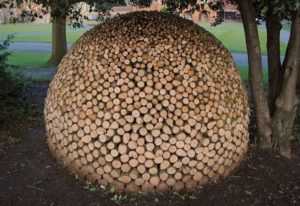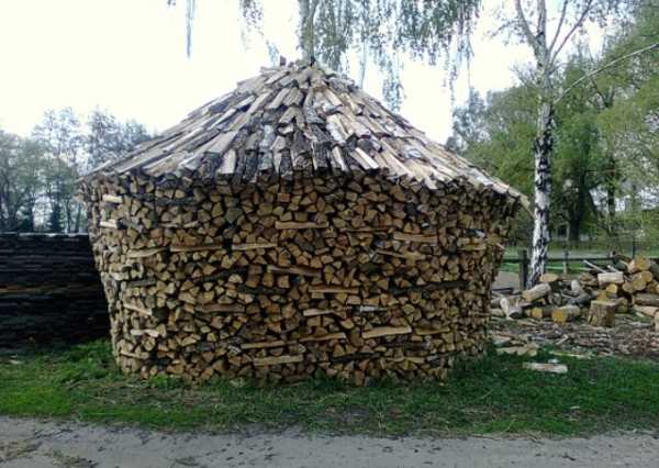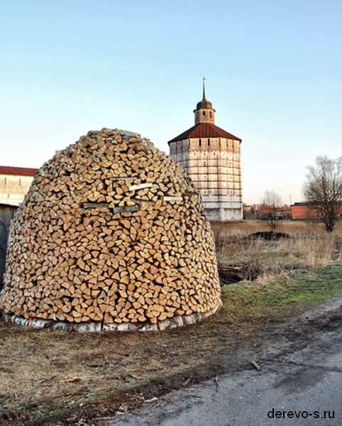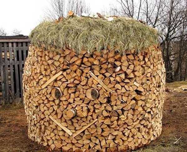 Некоторые любители дровяного зодчества создают интересные конструкции поленниц, напоминающие купол или стог сена.
