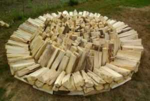 Дрова уже не первое столетие служат в качестве отопительного материала. После колки, дрова необходимо правильно сложить, это способствует быстрой сушке и увеличению времени хранения природного материала. В данном вопросе важно учитывать определенные правила, и тогда дрова могут храниться довольно продолжительное время. Одним из способов укладки и хранения дров является поленница круглой формы или как ее еще называют – поленница копна.