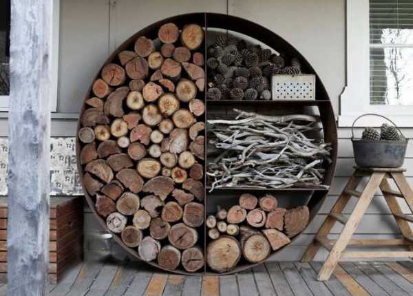 Укладка дров по кругу формирует устойчивую поленницу и открывает хорошие перспективы для ее декорирования.