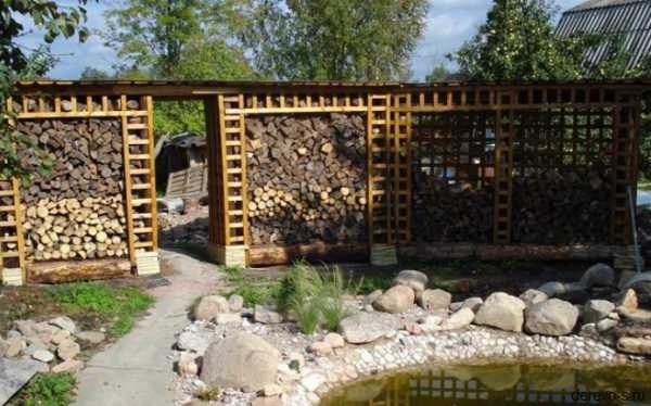 - Поленница или дровяник должны органично вписаться в ваш участок, и стать его украшением.