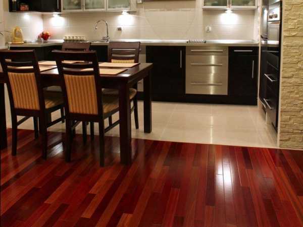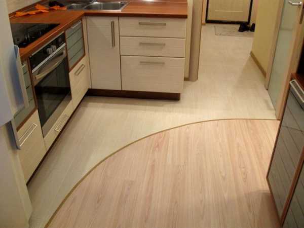 С помощью стыковки 2-х видов покрытия можно создать в помещении интересный дизайнерский вариант перехода из одной функциональной зоны в другую. Тем более что плитка обладает большей прочностью к механическим воздействиям, она не впитывает влагу, при этом легко моется, что немаловажно для таких помещений, как кухня.