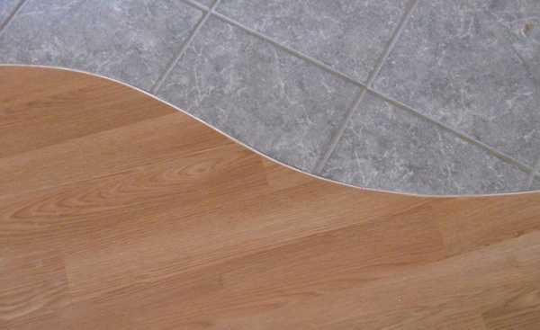 Закругленный или волнообразный стык. Вопрос о том, как соединить ламинат и плитку волнообразной линией, решается аналогично. Главное — помнить о некоторых моментах, продиктованных спецификой этого процесса. Чтобы получить красиво смотрящийся волнообразный стык ламината и плитки, шов между материалами должен быть по всей длине одинаковым по таким показателям, как: