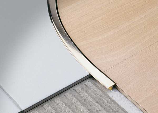Как оформить стык плитки и ламината? Чтобы соединить плитку и ламинат по прямой линии, чаще всего используется деревянная фурнитура. Алюминиевая или пластиковая поможет оформить не только прямые, но и дугообразные линии стыка материалов без ограничения длины шва.