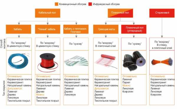Можно назвать несколько видов электрических полов. Для обогрева используется: